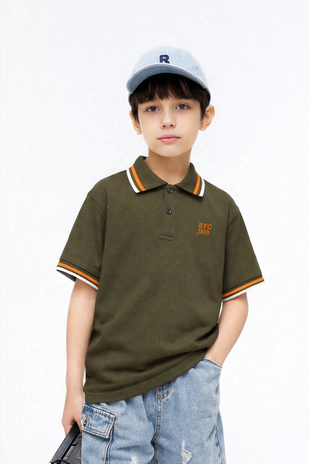 Kids Comfy Collar T-Shirt OLIVE BTSS-1808