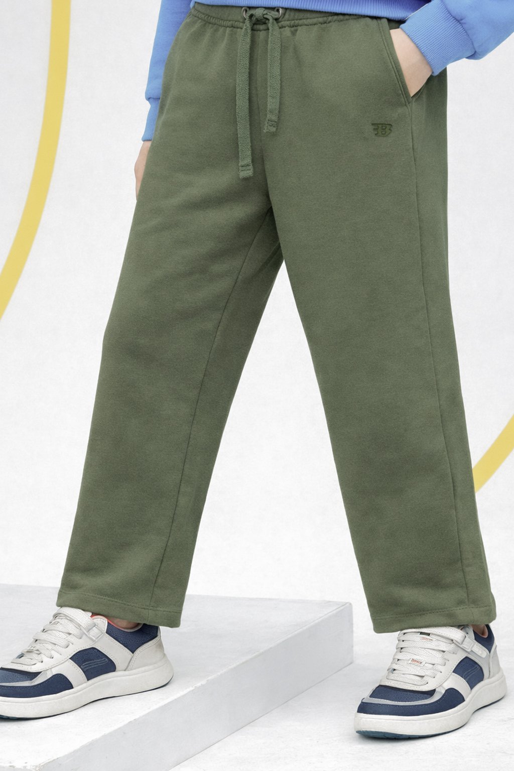 The straight-leg cut offers a modern, clean look, while the neatly finished side pockets add functionality without bulk. A subtle embroidered logo detail enhances the premium appeal without overpowering the design. Easy to pair with sweatshirts, hoodies, or casual tees, these trousers are perfect for daily wear, travel, playtime, or casual outings.